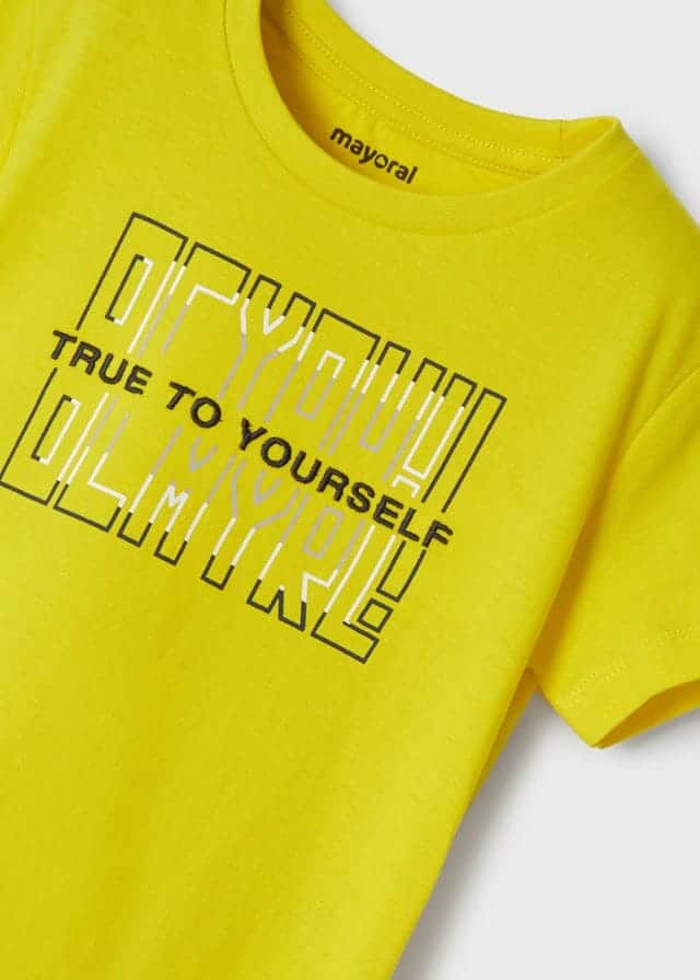 Μπλούζα κοντομάνικη ECOFRIENDS για αγόρι Mayoral από 2 έως 9 ετών σε κίτρινο χρώμα.