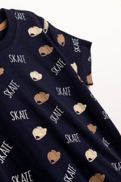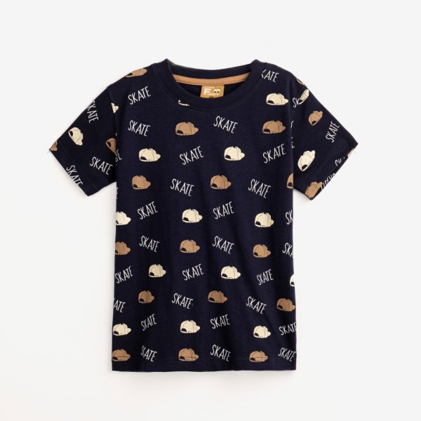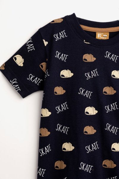 Παιδική μπλούζα for Funky Kids για αγόρι από 1 έως 6 ετών σε μπλε χρώμα με μπεζ και καφέ allover τύπωμα.