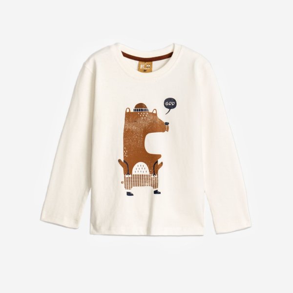 Παιδική μπλούζα μακρυμάνικη κάλτσα for Funky Kids για αγόρι από 1 έως 6 ετών σε εκρού χρώμα με τύπωμα.
