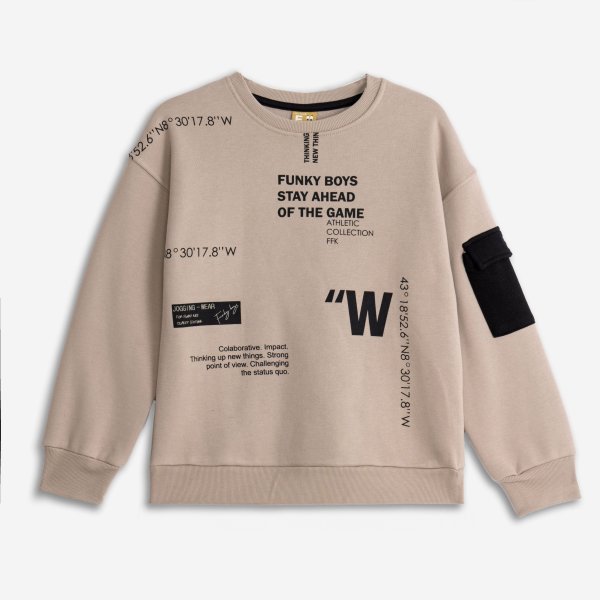 Παιδική μπλούζα for Funky Kids για αγόρι από 6 έως 16 ετών σε χρώμα μπεζ με τύπωμα.