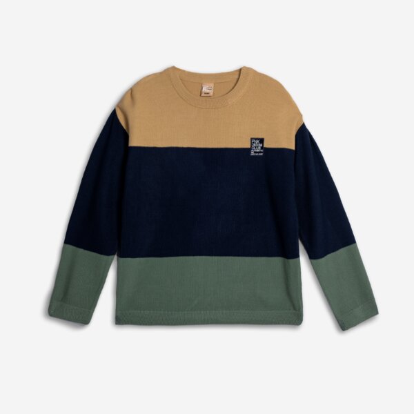 Παιδική μπλούζα πλεκτή for Funky kids για αγόρι από 6 έως 16 ετών σε χρώμα μπεζ, μπλε και πράσινο.