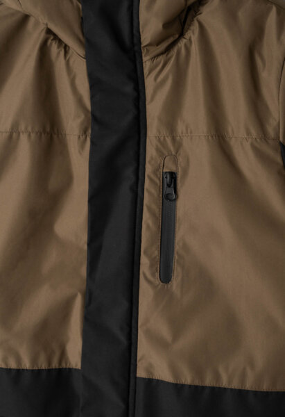 Παιδικό μπουφάν Hashtag παρκά με επένδυση και κουκούλα για αγόρι από 6 έως 16 ετών σε μαύρο με καφέ χρώμα.