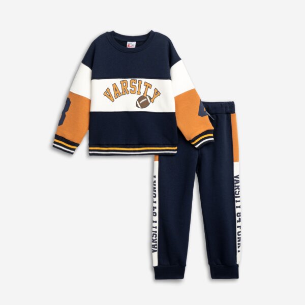 Παιδικό σετ φόρμα φούτερ for Funky kids για αγόρι από 2 έως 6 ετών. Μπλούζα με τύπωμα σε μπλε-πορτοκαλί-εκρού χρώμα και παντελόνι σε μπλε χρώμα με λάστιχο και κορδόνι στη μέση.