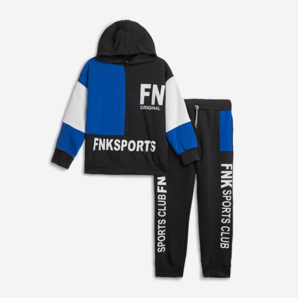 Παιδικό σετ φόρμα φούτερ for Funky kids για αγόρι από 6 έως 16 ετών. Μπλούζα δίχρωμη σε μαύρο και μπλε χρώμα με κουκούλα και μαύρο παντελόνι.