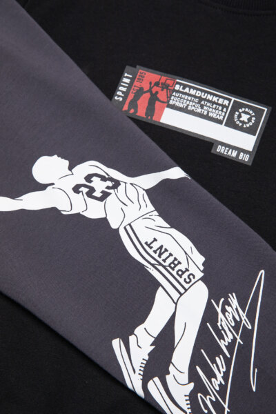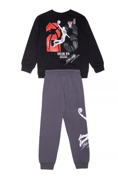 Παιδικό σετ φόρμας Sprint για αγόρι από 6 έως 16 ετών χωρίς χνούδι με μαύρη μπλούζα και γκρι παντελόνι με τύπωμα.