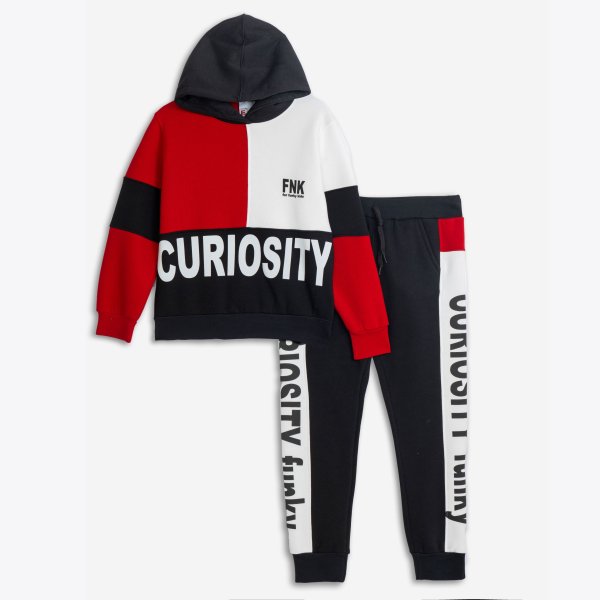 Παιδικό σετ φόρμας for Funky Kids για αγόρι από 6 έως 16 ετών σε μαύρο, κόκκινο και εκρού χρώμα.