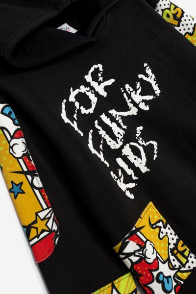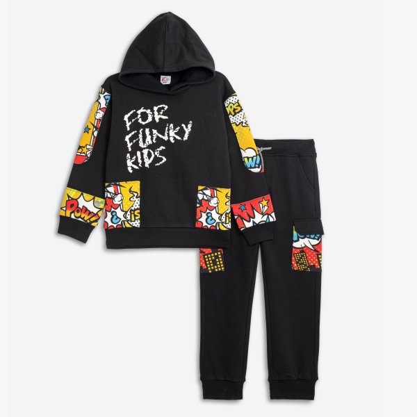 Παιδικό σετ φόρμας for Funky Kids για αγόρι από 6 έως 16 ετών. Μπλούζα σε μαύρο χρώμα με allover τύπωμα και παντελόνι σε μαύρο χρώμα.