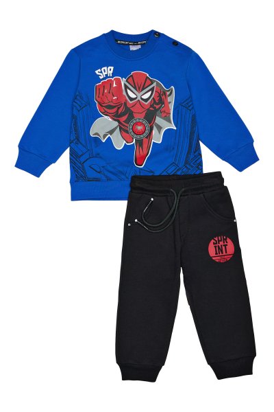 Παιδικό σετ φόρμας Sprint για αγόρι από 12 μηνών έως 5 ετών. Μπλούζα σε μπλε χρώμα με τύπωμα και λαμπάκι, μαύρο παντελόνι.