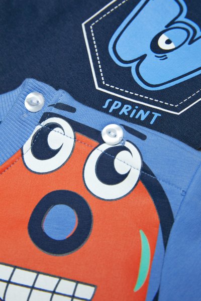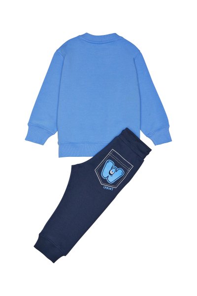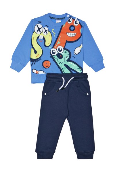 Παιδικό σετ φόρμας Sprint για αγόρι από 12 μηνών έως 5 ετών. Μπλούζα σε μπλε χρώμα με τύπωμα και σκούρο μπλε παντελόνι.