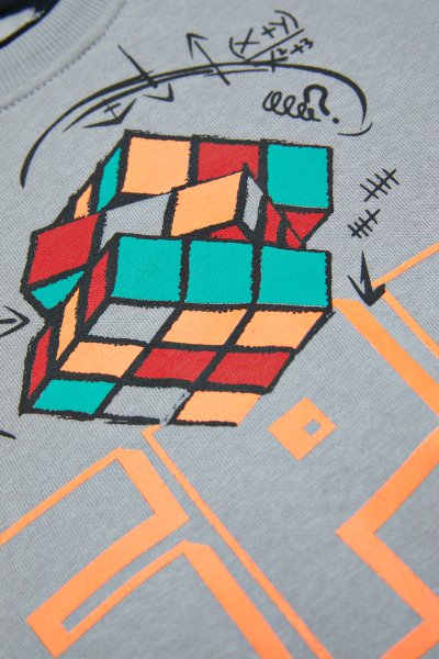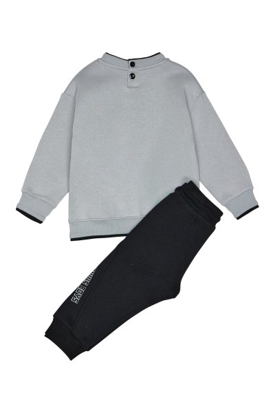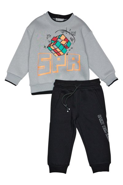 Παιδικό σετ φόρμας Sprint για αγόρι από 12 μηνών έως 5 ετών. Μπλούζα σε γκρι χρώμα με τύπωμα και μαύρο παντελόνι.