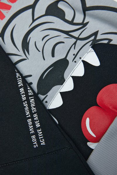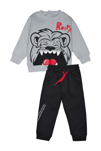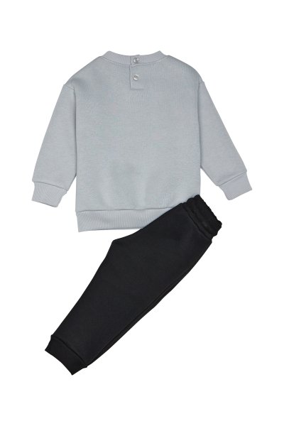 Παιδικό σετ φόρμας Sprint για αγόρι από 12 μηνών έως 5 ετών. Μπλούζα σε γκρι χρώμα με τύπωμα και μαύρο παντελόνι.