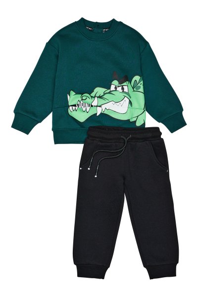 Παιδικό σετ φόρμας Sprint για αγόρι από 12 μηνών έως 5 ετών. Μπλούζα σε πράσινο χρώμα με τύπωμα και μαύρο παντελόνι.