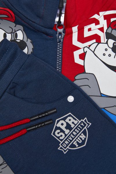 Παιδικό σετ φόρμας Sprint για αγόρι από 12 μηνών έως 5 ετών. Ζακέτα σε μπλε-κόκκινο χρώμα με τύπωμα και μπλε παντελόνι.