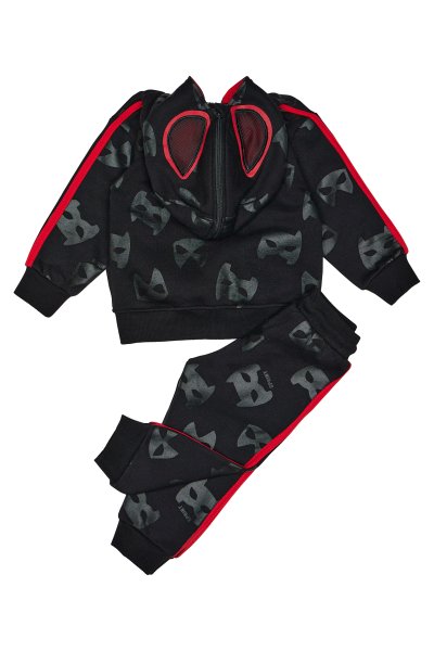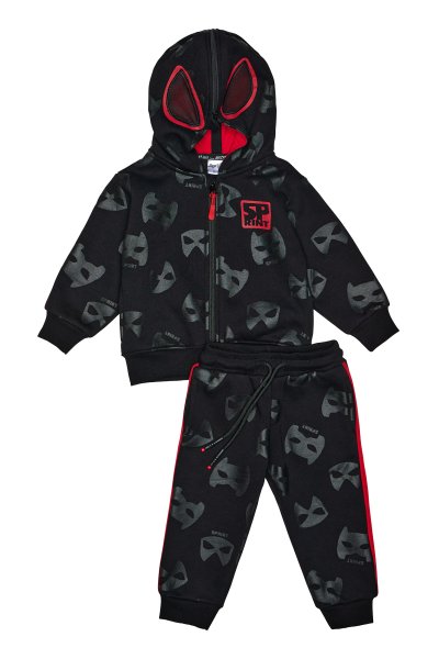 Παιδικό σετ φόρμας Sprint για αγόρι από 12 μηνών έως 5 ετών. Ζακέτα σε μαύρο χρώμα με τύπωμα και μαύρο παντελόνι με allover τύπωμα.