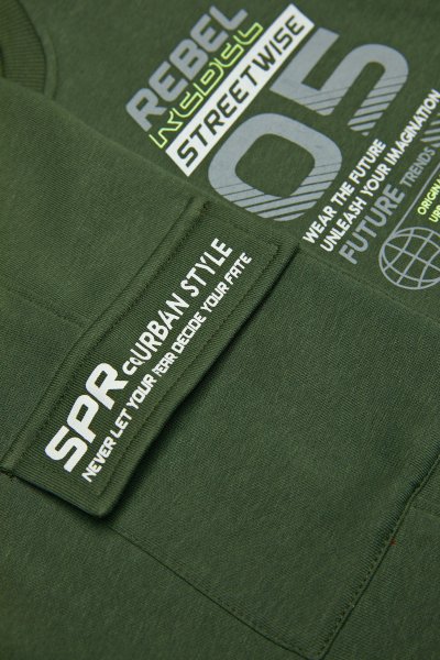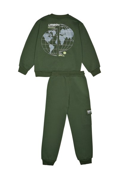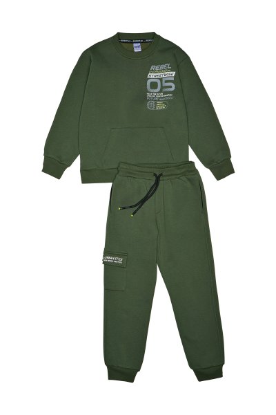 Παιδικό σετ φόρμας Sprint για αγόρι από 6 έως 16 ετών σε χακί χρώμα με τύπωμα και χακί παντελόνι.
