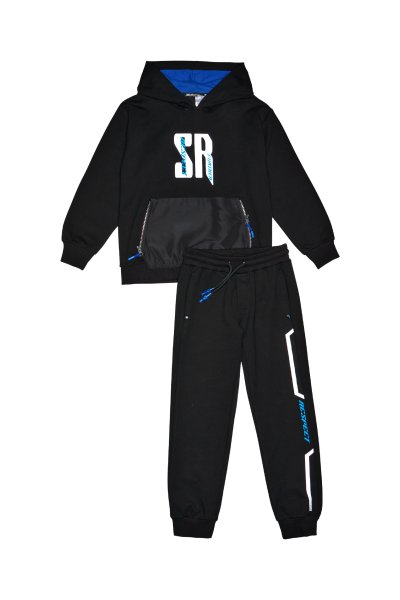 Παιδικό σετ φόρμας Sprint για αγόρι από 6 έως 16 ετών σε μαύρο χρώμα με τύπωμα και μαύρο παντελόνι.