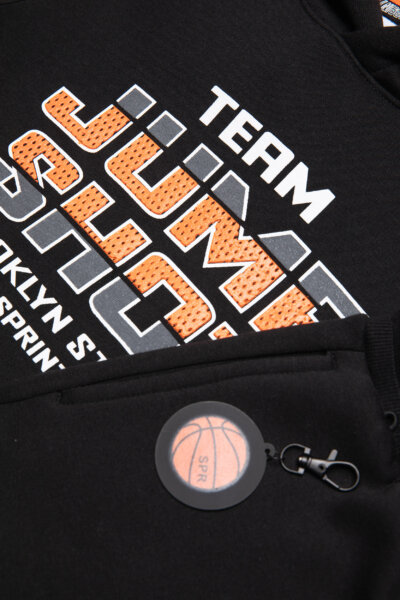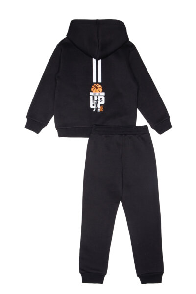 Παιδικό σετ φόρμας Sprint για αγόρι από 6 έως 16 ετών. Μπλούζα σε μαύρο χρώμα με κουκούλα και μαύρο παντελόνι.