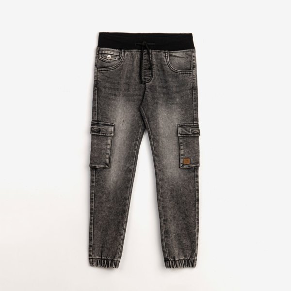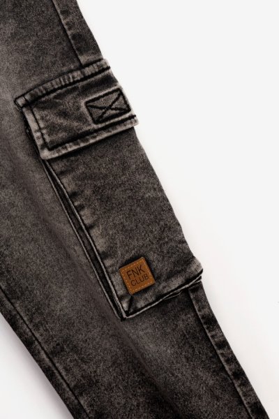 Παιδικό παντελόνι φούτερ τζιν cargo for Funky Kids για αγόρι από 6 έως 16 ετών σε μαύρο χρώμα.