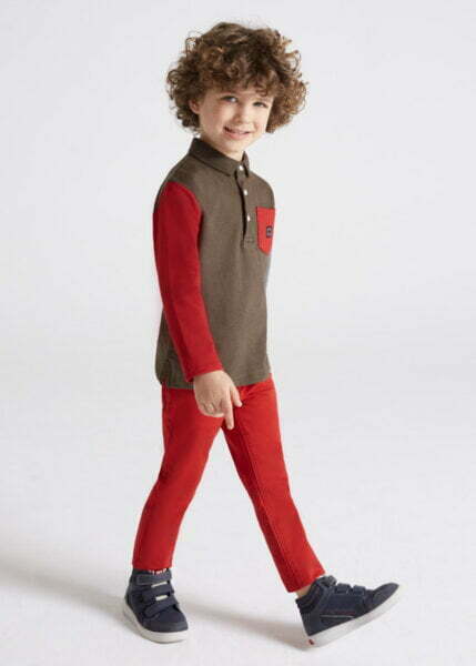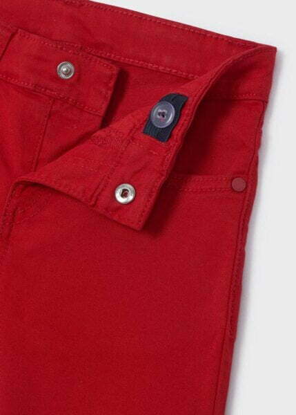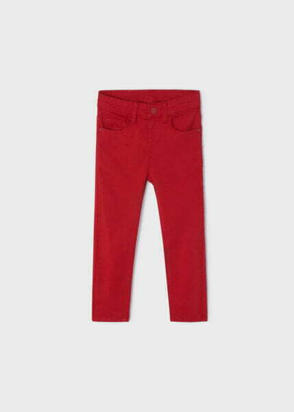Παντελόνι σε στενή γραμμή (Slim fit) που εφαρμόζεται στη σιλουέτα. Κλείνει με ένα κουμπί. Τα μεγέθη 6 έως 9 έχουν φερμουάρ που για να είναι ευκολοφόρετα. Απαλό βαμβακερό ελαστικό ύφασμα. Αυτό το είδος παρουσιάζει ιδιαίτερο χρωματισμό με αποτέλεσμα το τελείωμα να μην είναι ομοιόμορφο ή να ποικίλει με τις πλύσεις.