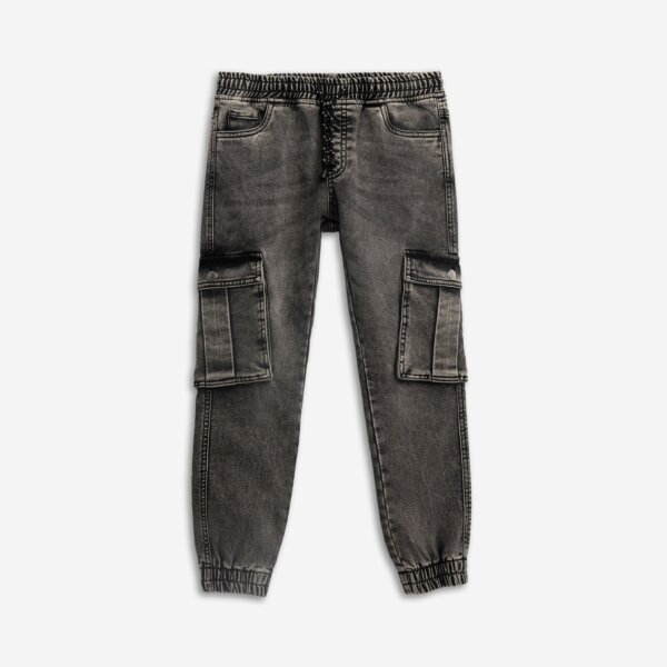 Παιδικό τζιν παντελόνι μαλακό λύκρα cargo for Funky kids για αγόρι από 6 έως 16 ετών σε μαύρο χρώμα.