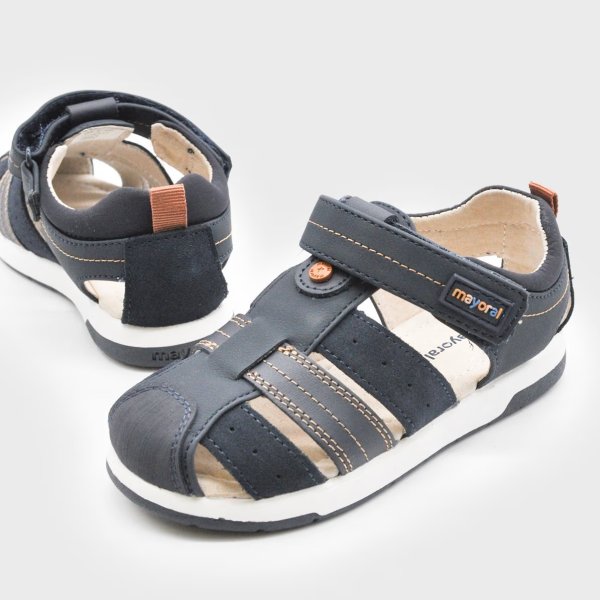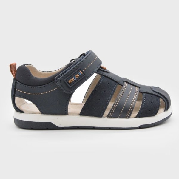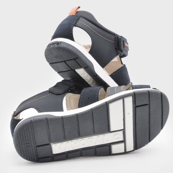 Παιδικά σανδάλια δέρμα Mayoral για αγόρι σε μπλε χρώμα. Αντιολισθητική σόλα για μεγαλύτερη άνεση και σταθερότητα στο περπάτημα. Κλείσιμο με αυτοκόλλητη ταινία για εύκολη εφαρμογή.