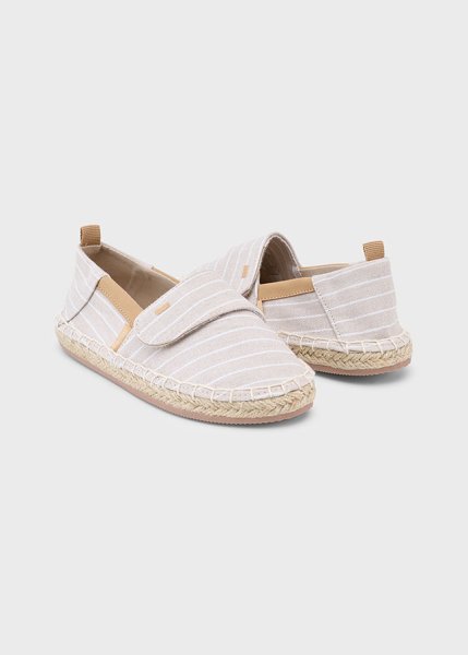 Παιδικές εσπαντρίγιες Mayoral για αγόρι σε εκρού χρώμα. Ανατομική σόλα για μεγαλύτερη άνεση και σταθερότητα στο περπάτημα. Κλείνει με βέλκρο για πιο εύκολη εφαρμογή.