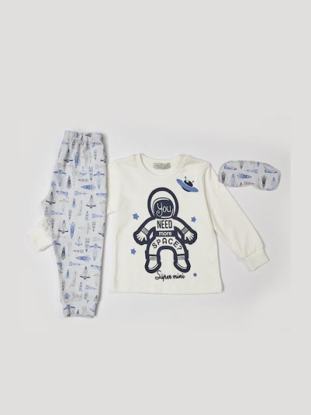 Παιδική Πιτζάμα Hashtag για αγόρι από 1 έως 6 ετών σε εκρού χρώμα με τύπωμα.