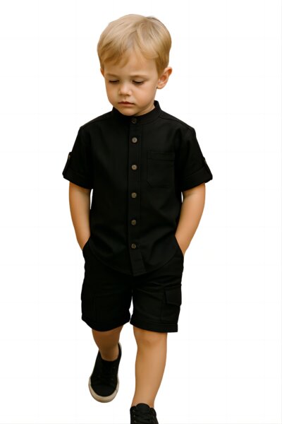 Παιδική πουκάμισα κοντομάνικη Serafino για αγόρι από 1 έως 5 ετών σε μαύρο χρώμα.