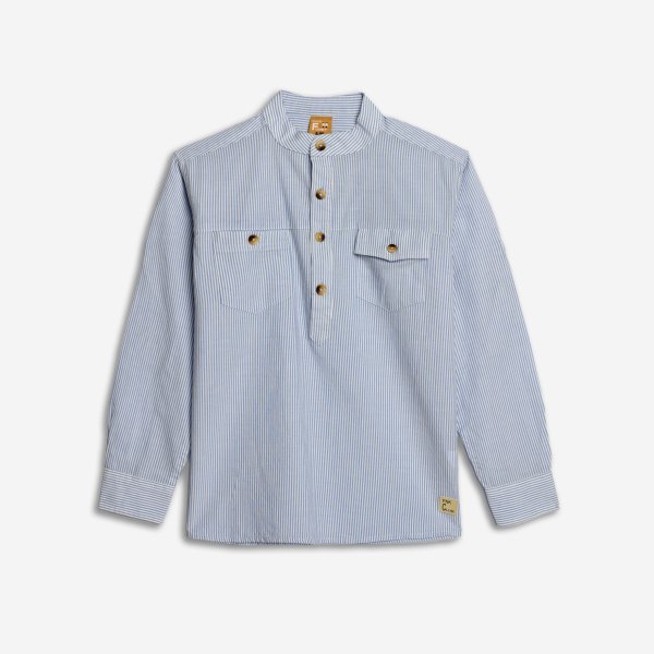 Παιδικό πουκάμισο for Funky Kids για αγόρι από 6 έως 16 ετών σε ριγέ λευκό-γαλάζιο χρώμα.