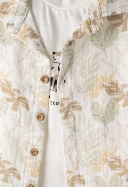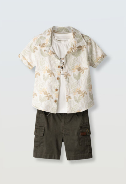 Παιδικό σετ 3τμχ Hashtag για αγόρι από 1 έως 6 ετών. Λευκό πουκάμισο με λευκή μπλούζα και χακί βερμούδα.
