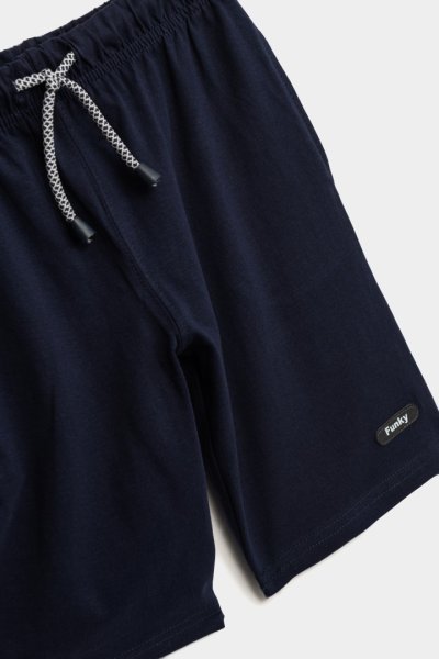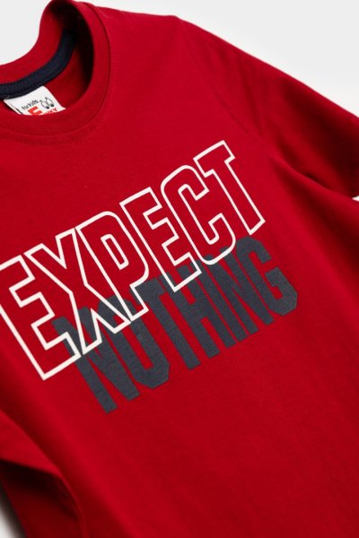 Παιδικό σετ μακό for Funky Kids για αγόρι από 6 έως 16 ετών. Μπλούζα σε κόκκινο χρώμα με τύπωμα μπροστά, βερμούδα σε μπλε χρώμα με λάστιχο και κορδόνι στη μέση και τσέπες.