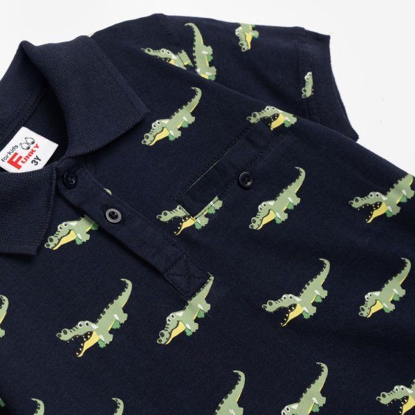 Παιδικό σετ παντελόνι for Funky Kids για αγόρι από 2 έως 6 ετών. Μπλούζα πόλο σε μπλε χρώμα με allover τύπωμα και παντελόνι σε χρώμα πράσινο.