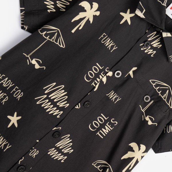 Παιδικό σετ παντελόνι for Funky Kids για αγόρι από 2 έως 6 ετών. Πουκάμισο σε μπλε χρώμα με allover τύπωμα και παντελόνι σε χρώμα μπεζ.