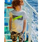 Μπλούζα μακό με ελαστικό ριπ στο λαιμό και τύπωμα εμπρός με φλούο πολυεστερικό μοτίφ.
