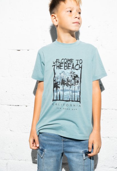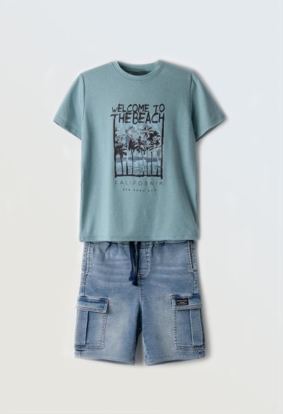 Παιδικό σετ τζιν βερμούδα Hashtag για αγόρι από 6 έως 16 ετών. Μπλούζα σε μπλε χρώμα με τύπωμα και μπλε τζιν βερμούδα.