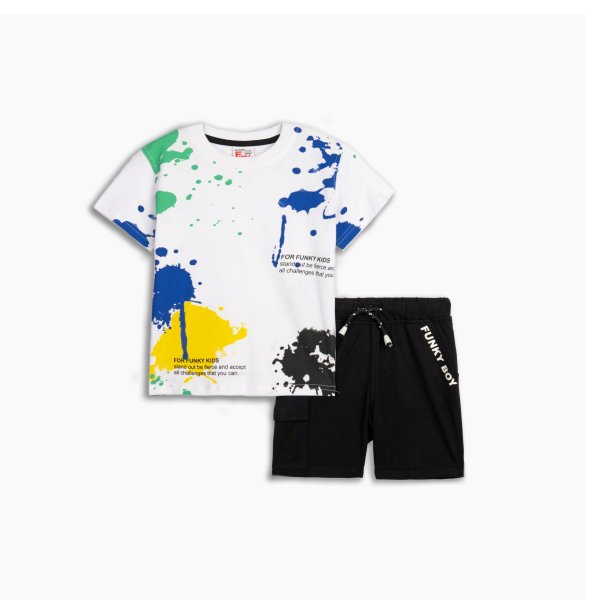 Παιδικό σετ βερμούδα for Funky Kids για αγόρι από 2 έως 6 ετών. Μπλούζα σε λευκό χρώμα με τύπωμα και μαύρη βερμούδα.