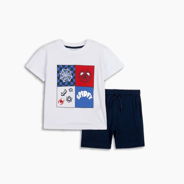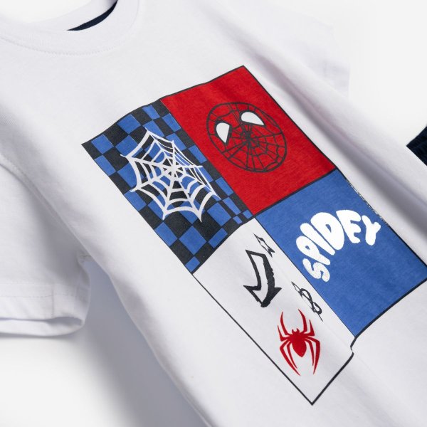 Παιδικό σετ βερμούδα for Funky Kids για αγόρι από 2 έως 6 ετών. Μπλούζα σε λευκό χρώμα με τύπωμα Spidercomic και μπλε βερμούδα.