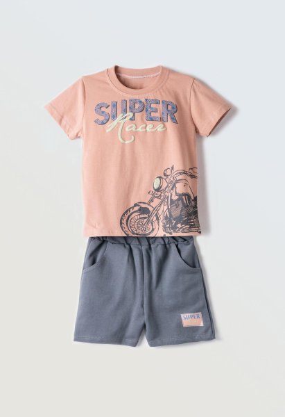 Παιδικό σετ μακό Hashtag για αγόρι από 1 έως 6 ετών. Μπλούζα σε σομόν χρώμα με τύπωμα και ανθρακί βερμούδα.