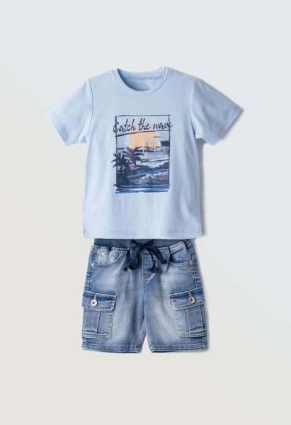 Παιδικό σετ βερμούδα Hashtag για αγόρι από 1 έως 6 ετών. Μπλούζα σε μπλε χρώμα και μπλε τζιν βερμούδα.