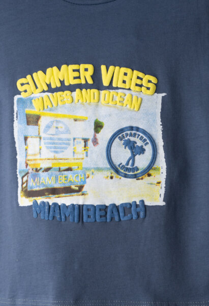 Παιδικό σετ βερμούδα Hashtag για αγόρι από 1 έως 6 ετών μπλούζα σε μπλε χρώμα και μπλε σκούρο σορτς.
