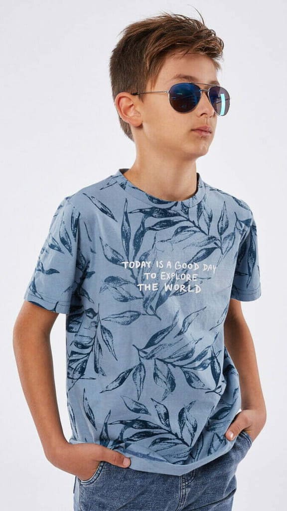 Μπλούζα σε μπλε χρώμα κοντομάνικη με allover τύπωμα.