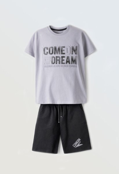 Παιδικό σετ βερμούδα Hashtag για αγόρι από 6 έως 16 ετών. Μπλούζα σε γκρι χρώμα και μαύρη βερμούδα.