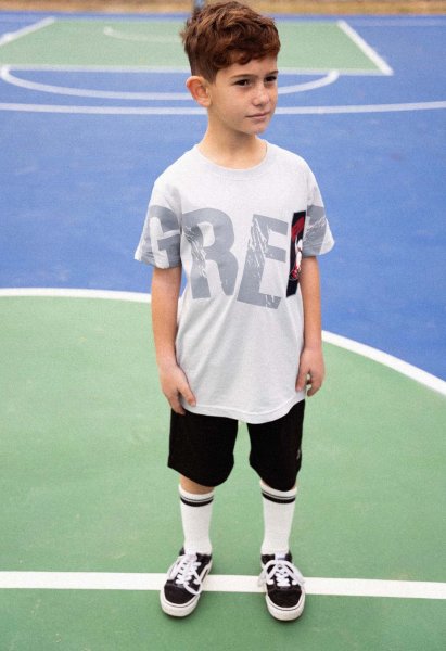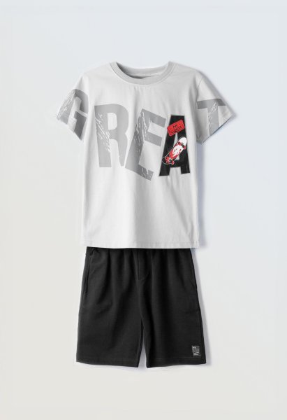 Παιδικό σετ βερμούδα Hashtag για αγόρι από 6 έως 16 ετών. Μπλούζα σε γκρι χρώμα και μαύρη βερμούδα.