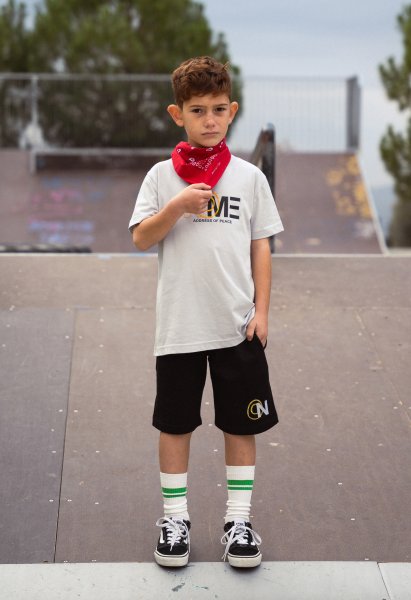 Παιδικό σετ βερμούδα Hashtag για αγόρι από 6 έως 16 ετών. Μπλούζα σε γκρι χρώμα και μαύρη βερμούδα.