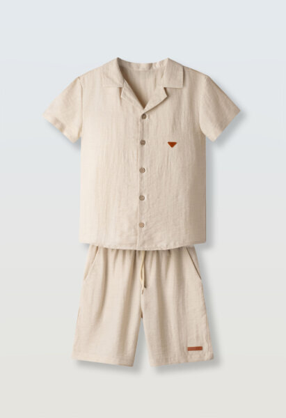 Παιδικό σετ βερμούδα Hashtag για αγόρι από 6 έως 16 ετών. Πουκάμισο λινό σε μπεζ χρώμα με ασορτί βερμούδα.