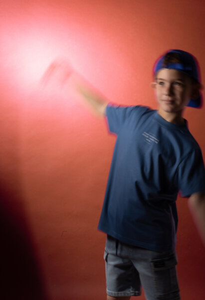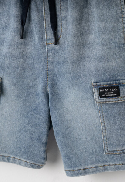 Παιδικό σετ βερμούδα Hashtag για αγόρι από 6 έως 16 ετών. Μπλούζα σε μπλε χρώμα και μπλε τζιν βερμούδα cargo.