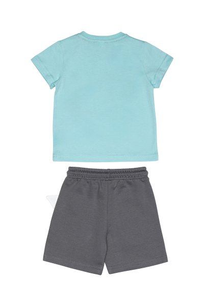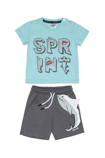 Παιδικό σετ βερμούδα Sprint για αγόρι από 18 μηνών έως 6 ετών. Μπλούζα σε γαλάζιο χρώμα με τύπωμα και βερμούδα σε γκρι χρώμα.