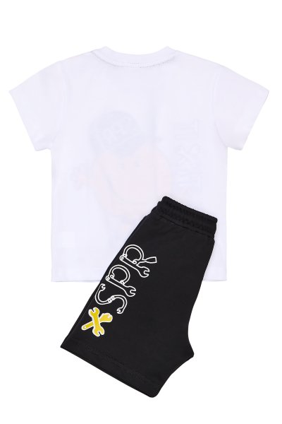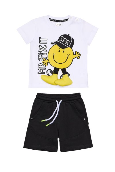 Παιδικό σετ βερμούδα Sprint για αγόρι από 18 μηνών έως 6 ετών. Μπλούζα σε λευκό χρώμα με τύπωμα και βερμούδα σε τυρκουάζ χρώμα.