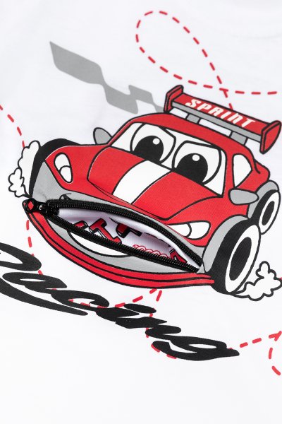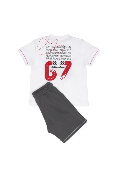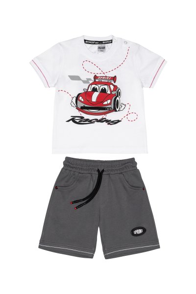Παιδικό σετ βερμούδα Sprint για αγόρι από 18 μηνών έως 6 ετών. Μπλούζα σε λευκό χρώμα με τύπωμα και βερμούδα σε γκρι χρώμα.
