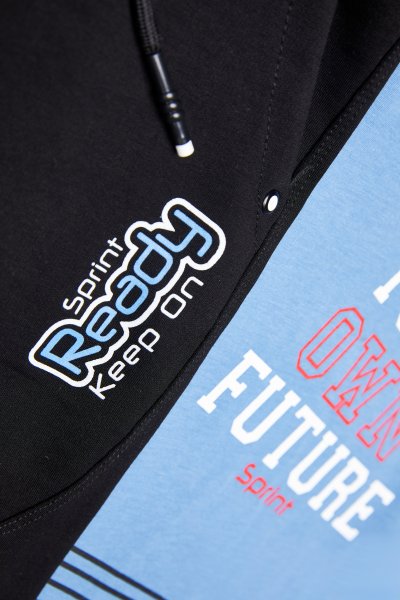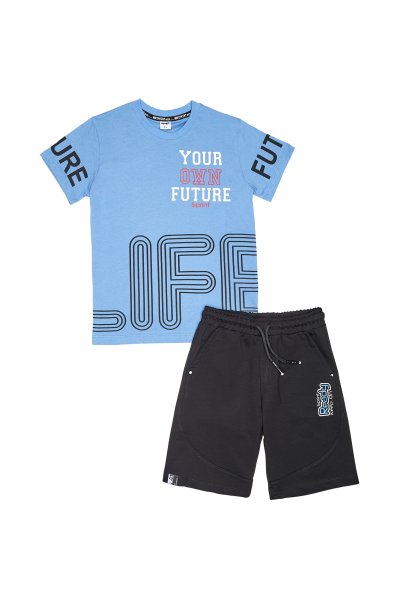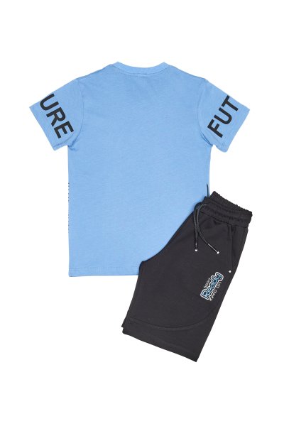 Παιδικό σετ βερμούδα Sprint για αγόρι από 6 έως 16 ετών. Μπλούζα σε μπλε χρώμα με τύπωμα και βερμούδα σε μαύρο χρώμα.